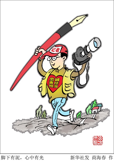 漫畫:腳下有泥,心中有光 新華社發 商海春 作