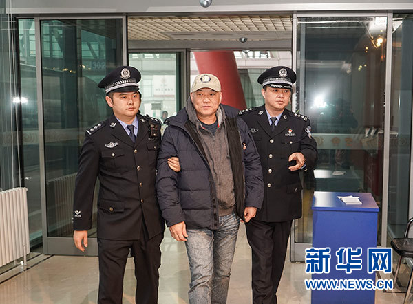 11月14日,在北京首都機(jī)場(chǎng),紅通逃犯鄭泉官被從美國(guó)強(qiáng)制遣返。 新華社記者 殷剛 攝