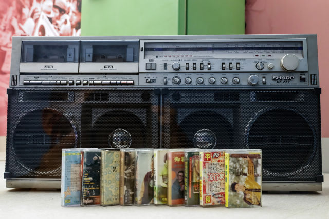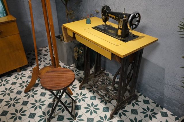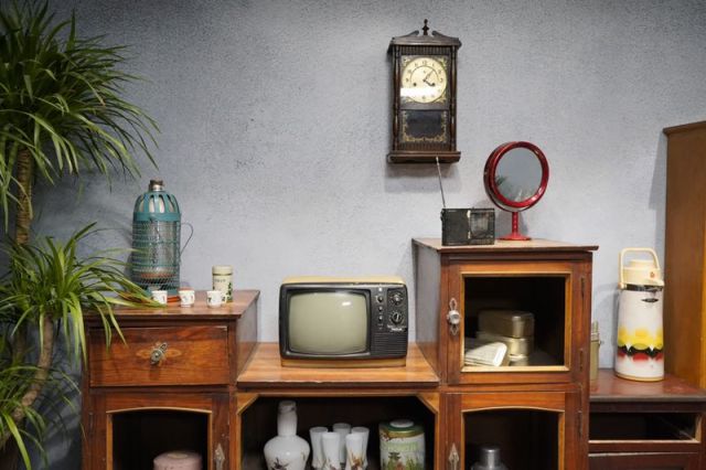 兩名參觀者在“時(shí)光博物館”里的年代照相館拍照留念。