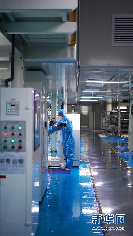在井岡山產業園生產光學膜的江西藍海芯科技集團,工人在車間檢測產品(11月21日攝)。新華社記者 胡晨歡 攝