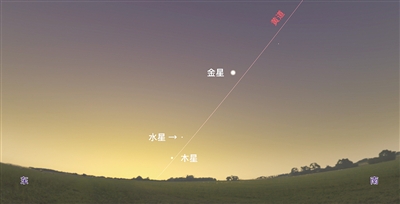 12月15日黎明時分東南方低空中幾顆行星的位置示意圖