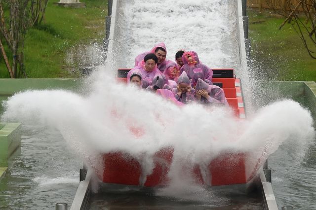 游客在浙江寧波中華復興文化園非物質(zhì)文化博覽園體驗游樂項目 ( 黃宗治/攝 )