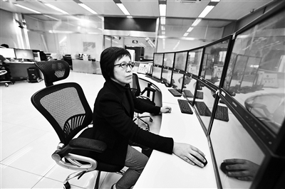 ▲北京市氣象臺首席預報員郭金蘭正在氣象會商室查看氣象數(shù)據(jù)