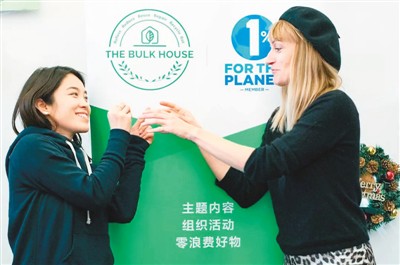 現(xiàn)在,這對(duì)小情侶在北京南鑼鼓巷開(kāi)了一家名叫THE BULK HOUSE(零浪費(fèi)無(wú)包裝商店)的小店,繼續(xù)倡導(dǎo)“零浪費(fèi)”生活,用不銹鋼吸管代替塑料吸管,還把用過(guò)的米袋子舊物改造成時(shí)尚手包、背包,把舊布料做的衣服和枕套,用閑置紙盒郵寄快遞,受到了顧客歡迎。