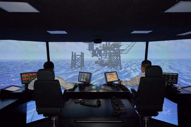 工作人員在執行海上船舶航行模擬