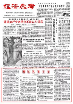 80年代初,改革的東風讓經濟建設的熱潮,一浪高過一浪,新華社想辦一份綜合性經濟報紙,時任新華社國內部副主任的李峰建議,報紙采用“經濟參考”作為報名,第一可以有些“神秘”色彩,第二說話可以放開一些。新華社黨組采納了他的意見。
