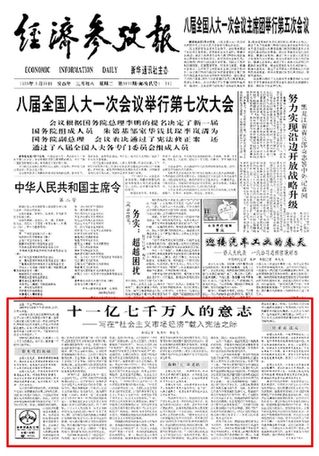 1993年,“國家實行社會主義市場經濟”被寫進了憲法。