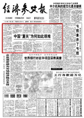 也是1988年,日本友人小林實先生對我國經濟考察后說,“中國對企業太嬌慣了”。1988年7月25日,一篇題為《少些父愛主義 多些市場磨難》的評論,成為《經濟參考報》在我國經濟體制改革到了關鍵時刻發出的疾呼。