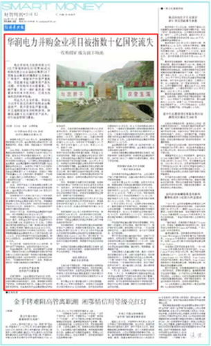 2013年7月5日刊登的《華潤電力并購企業項目被指數十億國資流失》一文,引起中紀委和國務院國資委等監管部門重視,掀開了華潤集團腐敗窩案!