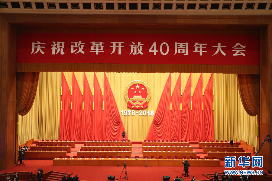 12月18日,慶祝改革開放40周年大會(huì)在北京人民大會(huì)堂隆重舉行。圖為人民大會(huì)堂大禮堂。新華網(wǎng)記者?郭小天 攝