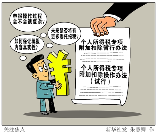 日前,《個人所得稅專項(xiàng)附加扣除暫行辦法》和《個人所得稅專項(xiàng)附加扣除操作辦法(試行)》正式公布。面對這項(xiàng)即將實(shí)施的惠民政策,很多人關(guān)心:申報(bào)操作過程是否會很復(fù)雜?如何保證信息真實(shí)性?委托報(bào)稅可否實(shí)現(xiàn)?“新華視點(diǎn)”記者采訪了權(quán)威人士、專家以及多地基層稅務(wù)人員,回應(yīng)民生關(guān)切。