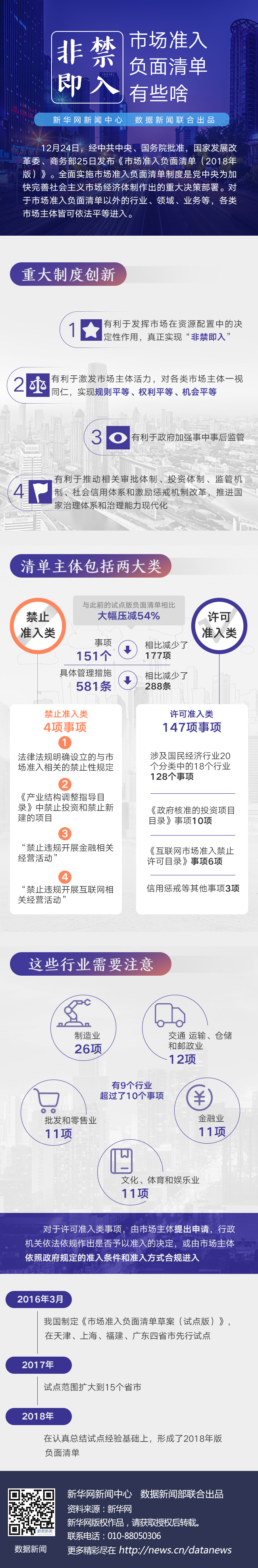 隨著《市場(chǎng)準(zhǔn)入負(fù)面清單(2018年版)》25日正式公布,我國(guó)市場(chǎng)準(zhǔn)入負(fù)面清單制度進(jìn)入全面實(shí)施新階段,實(shí)現(xiàn)清單之外所有市場(chǎng)主體“非禁即入”。