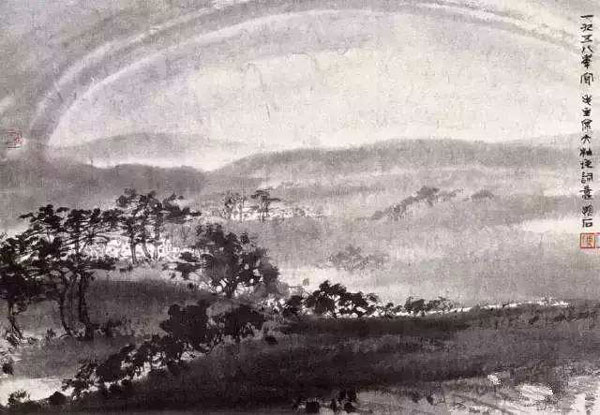 赤橙黃綠青藍紫,誰持彩練當空舞?雨后復斜陽,關山陣陣蒼。
