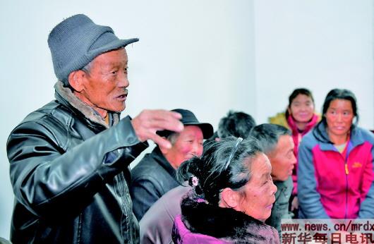 “我也要說兩句?!甭犃苏勗拑?nèi)容,這位叫申永貴的老人站了起來。“這一二年,家家院壩修得好,生活變化大,都是習(xí)總書記關(guān)心咱們老百姓。我已經(jīng)79歲嘍,生活好了,就想著多活一年半載,能看著我們村變得更好。”老人的話引來一片掌聲。