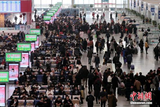 資料圖:高鐵已開(kāi)售春運(yùn)車(chē)票,車(chē)站內(nèi)人頭攢動(dòng)。中新社記者 張遠(yuǎn) 攝