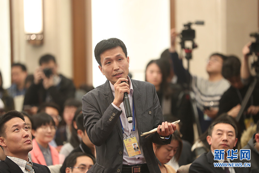 全國政協(xié)十三屆一次會議新聞發(fā)布會3月2日16:30在人民大會堂一層新聞發(fā)布廳召開,大會新聞發(fā)言人王國慶向中外媒體介紹本次大會有關(guān)情況并回答記者提問。圖為中國國際廣播電臺記者提問。新華網(wǎng)/中國政府網(wǎng) 曲植 攝