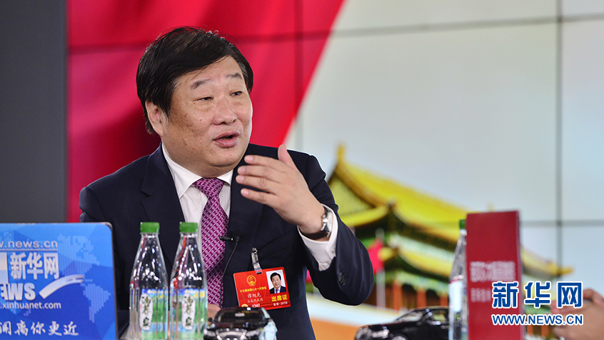 3月5日,全國人大代表、山東重工集團董事長、濰柴集團董事長譚旭光做客新華網2018全國兩會特別訪談。新華網 李相博攝