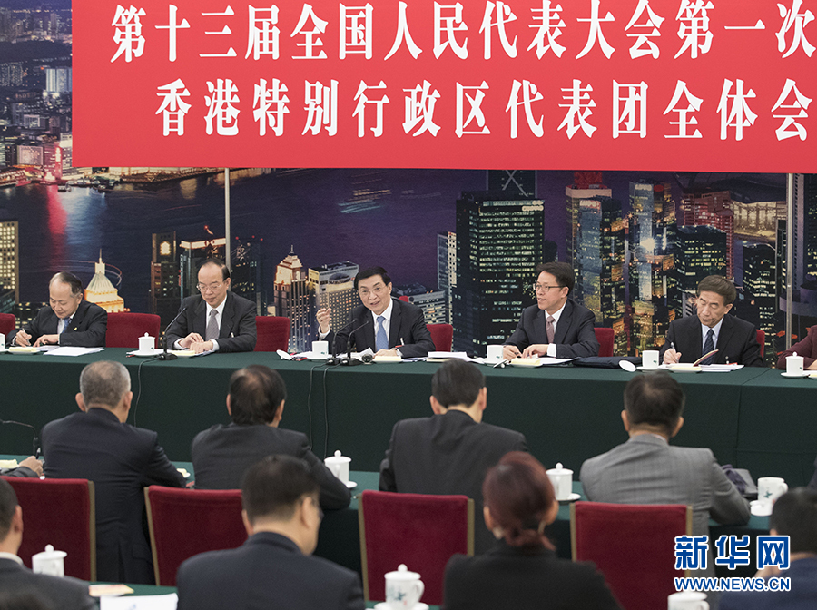 王滬寧分別參加了香港代表團、澳門代表團審議。王滬寧在與香港、澳門地區全國人大代表親切交流時表示,中共十八大以來,在以習近平同志為核心的中共中央領導下,國家發展取得歷史性成就,“一國兩制”實踐取得新的進展。要落實中共十九大對港澳工作重大部署,認真貫徹落實習近平總書記關于做好港澳工作的重要指示精神,全面準確貫徹“一國兩制”方針,嚴格按照憲法和基本法辦事,支持特別行政區政府和行政長官依法施政、積極作為,支持港澳融入國家發展大局,增強港澳同胞的國家意識和愛國精神,更好維護港澳繁榮穩定。港澳地區全國人大代表要增強大局意識、責任意識,發揮好作為愛國愛港、愛國愛澳中堅力量的作用。