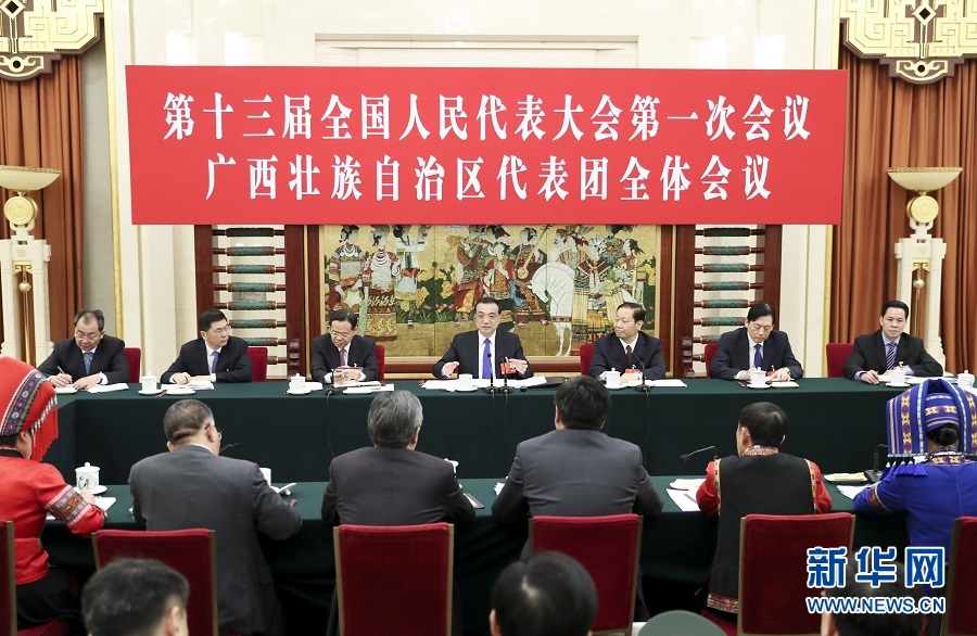 3月6日,中共中央政治局常委、國務院總理李克強參加十三屆全國人大一次會議廣西代表團的審議。