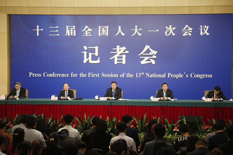 十三屆全國人大一次會議新聞中心3月6日上午10時在梅地亞中心多功能廳舉行記者會,邀請國家發展和改革委員會主任何立峰、副主任張勇、副主任寧吉喆就“創新和完善宏觀調控,推動高質量發展”相關問題回答中外記者提問。圖為記者會現場。 新華網/中國政府網 陳杰 攝