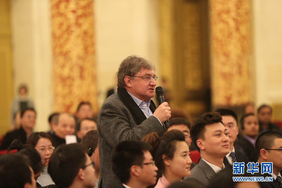 民主黨派中央和全國工商聯領導人記者會3月6日下午在人民大會堂金色大廳舉行,邀請民革中央主席萬鄂湘、民盟中央主席丁仲禮、民建中央主席郝明金、民進中央主席蔡達峰、農工黨中央主席陳竺、致公黨中央主席萬鋼、九三學社中央主席武維華、臺盟中央主席蘇輝、全國工商聯主席高云龍回答記者提問。圖為俄羅斯塔斯社記者提問。新華網/中國政府網?陳杰 攝?