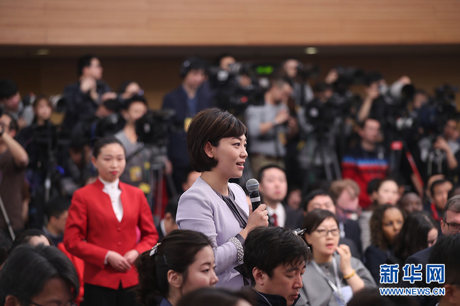 十三屆全國人大一次會議新聞中心于3月8日上午10時在梅地亞中心多功能廳舉行記者會,邀請外交部部長王毅就“中國外交政策和對外關系”回答中外記者提問。圖為中央電視臺記者提問。新華網/中國政府網陳杰 攝