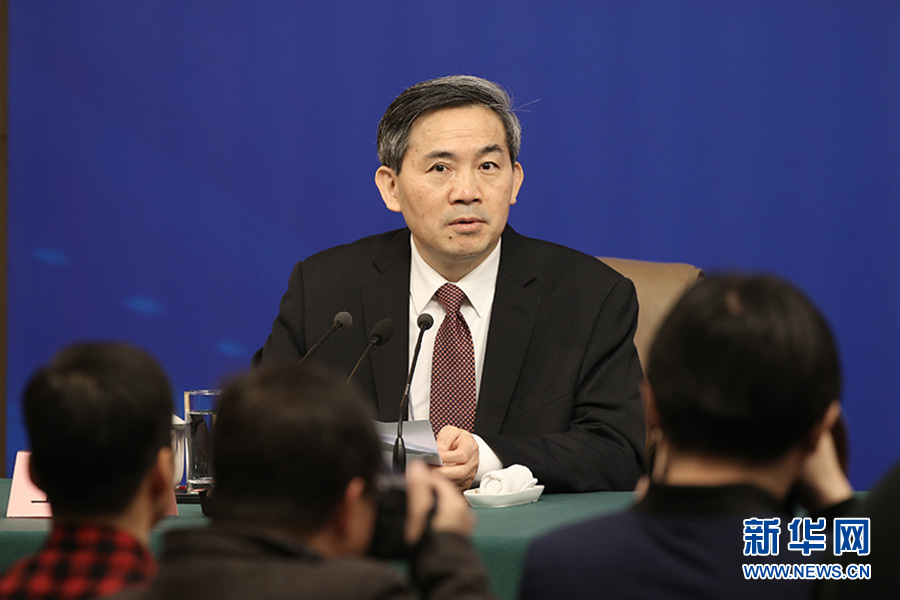 十三屆全國人大一次會議新聞中心3月11日10時在梅地亞中心多功能廳舉行記者會,邀請商務部部長鐘山、副部長兼國際貿易談判副代表王受文、副部長錢克明就“推動形成全面開放新格局 推動商務事業高質量發展”相關問題回答中外記者提問。圖為主持人何紹仁。新華網/中國政府網 陳杰 攝?
