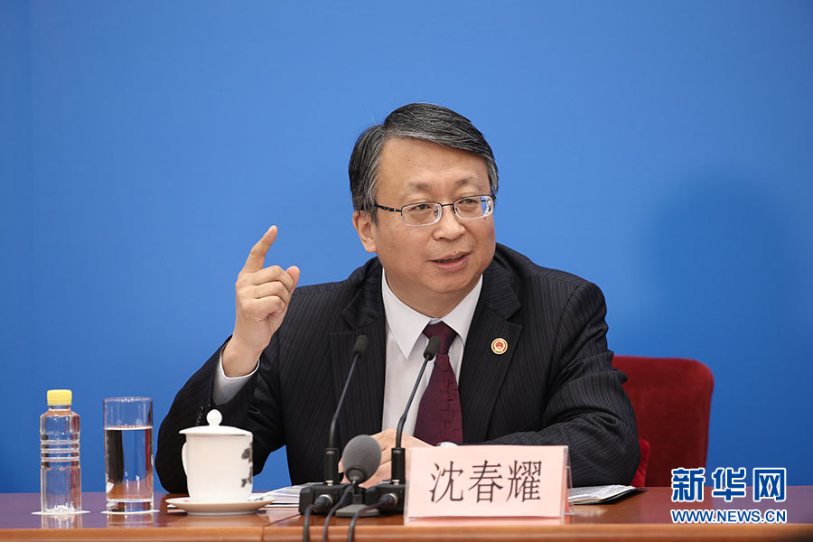 3月11日,十三屆全國人大一次會議新聞中心在人民大會堂一樓新聞發(fā)布廳舉行記者會,邀請十三屆全國人大一次會議秘書處法案組組長、全國人大常委會法工委主任沈春耀,法案組副組長、全國人大常委會法工委副主任鄭淑娜就“憲法修正案”相關(guān)問題回答中外記者提問。圖為沈春耀回答記者提問。新華網(wǎng)/中國政府網(wǎng) 翟子赫 攝