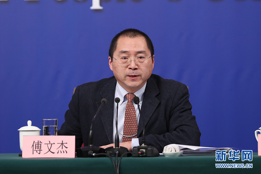 十三屆全國人大一次會議新聞中心于3月12日15時在梅地亞中心多功能廳舉行記者會,邀請十二屆全國人大財經委副主任委員尹中卿、教科文衛(wèi)委副主任委員吳恒、環(huán)資委副主任委員袁駟、內司委委員鄭功成,全國人大常委會預算工委副主任劉修文、常委會辦公廳秘書局巡視員傅文杰就“人大監(jiān)督工作”相關問題回答中外記者提問。圖為常委會辦公廳秘書局巡視員傅文杰回答記者提問。新華網/中國政府網 陳杰 攝
