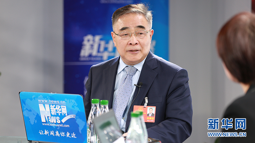 3月12日,全國人大代表,中國中醫科學院院長、天津中醫藥大學校長張伯禮院士(左)做客新華網2018全國兩會特別訪談。新華網 楊锘攝