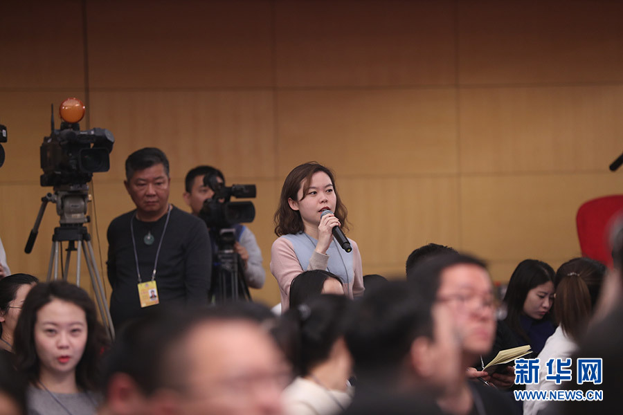 3月12日,十三屆全國人大一次會議新聞中心在梅地亞中心多功能廳舉行記者會,邀請十二屆全國人大內司委副主任委員王勝明、財經委副主任委員烏日圖、教科文衛(wèi)委副主任委員吳恒、環(huán)資委委員呂彩霞,全國人大常委會法工委副主任王超英、副主任許安標就“人大立法工作”相關問題回答中外記者提問。圖為北京青年報記者提問。新華網/中國政府網 翟子赫 攝