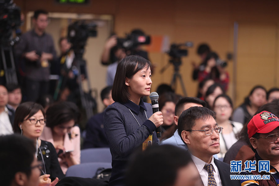 3月12日,十三屆全國人大一次會議新聞中心在梅地亞中心多功能廳舉行記者會,邀請十二屆全國人大內司委副主任委員王勝明、財經委副主任委員烏日圖、教科文衛委副主任委員吳恒、環資委委員呂彩霞,全國人大常委會法工委副主任王超英、副主任許安標就“人大立法工作”相關問題回答中外記者提問。圖為南方都市報記者提問。新華網/中國政府網 翟子赫 攝