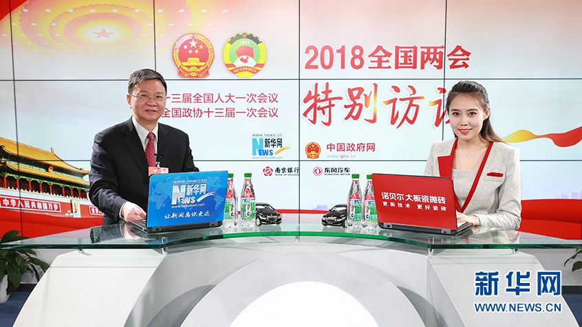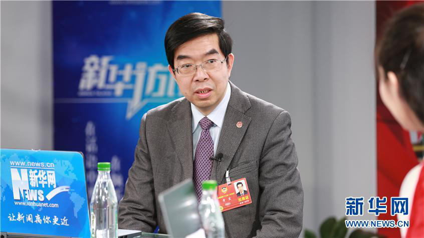 圖為全國政協委員、民進中央副主席、上海市政協副主席、上海交通大學副校長黃震做客新華網2018全國兩會特別訪談。新華網 楊锘攝