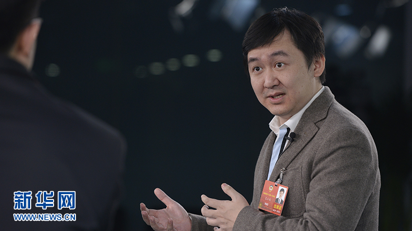 圖為全國政協委員、搜狗CEO王小川做客新華網2018全國兩會特別訪談。新華網 李相博攝