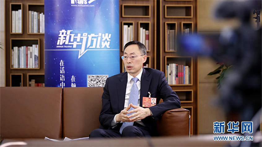 圖為全國人大代表,中糧集團黨組副書記、總裁于旭波接受新華網記者采訪。新華網李江攝