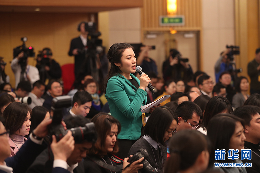 十三屆全國人大一次會議新聞中心于3月17日15時在梅地亞中心多功能廳舉行記者會,邀請環保部部長李干杰就“打好污染防治攻堅戰”相關問題回答中外記者提問。圖為新華社記者提問。新華網/中國政府網 曲植 攝
