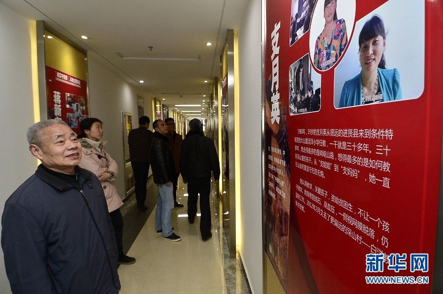 市民在江西省南昌市東湖區圖書館參觀“德耀贛鄱”大型圖片巡展(2017年3月7日攝)。此次圖片展共收集、整理18位道德模范與“身邊好人”的先進事跡材料。新華社記者 彭昭之 攝