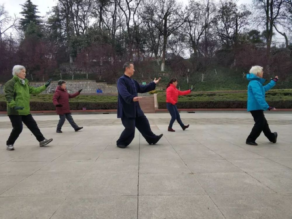 合肥,老人們在公園里打太極拳。新華網發(楊曉原 攝)