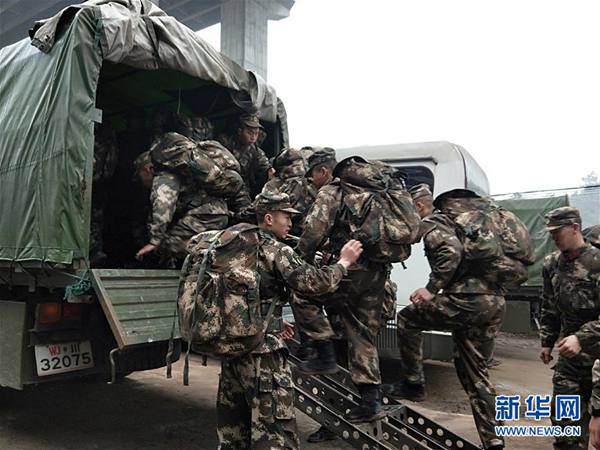 1月3日,武警宜賓支隊第一時間出動人員趕赴震區救援。新華社發(鄭磊 攝)