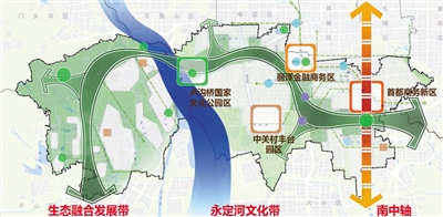 記者梳理發現,各區的空間布局多以軸、帶、區、點等來規劃和定位。例如,豐臺區空間布局為一軸、兩帶、四區和多點。其中,一軸指南中軸豐臺段,規劃指出這一軸將帶動城市南部地區發展的生態文化發展軸,獨具魅力的未來軸線、騰飛舞臺。