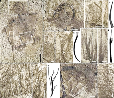 本次研究的蛙嘴龍標本及4種毛發(fā)