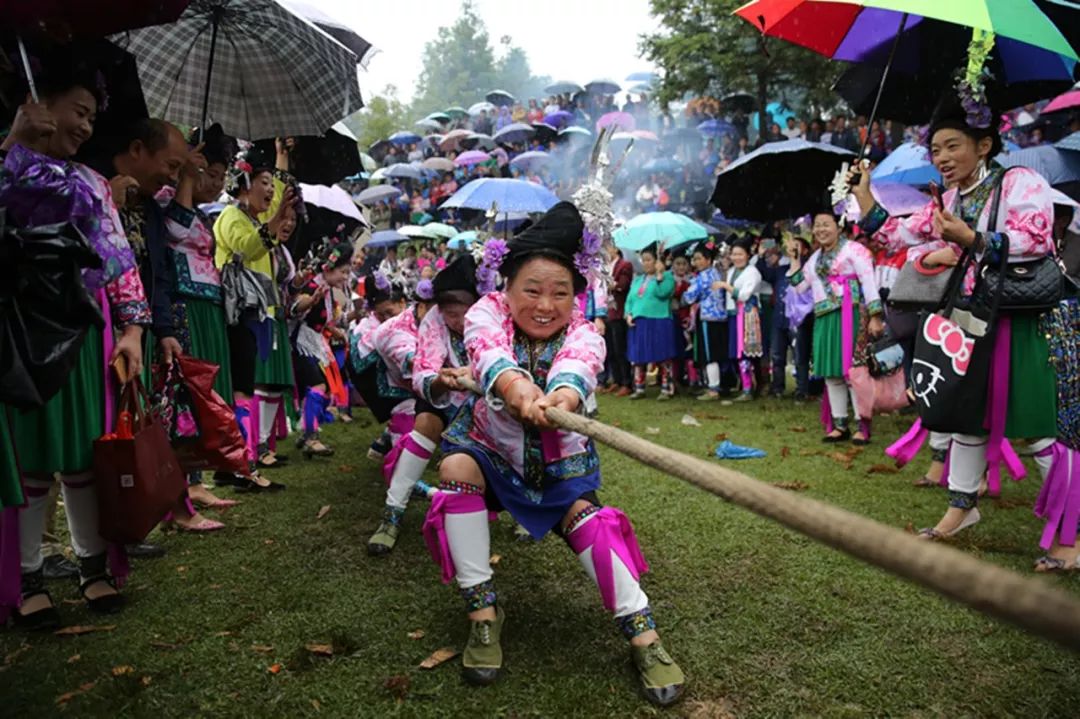 2018-09-27,廣西融水。苗族群眾在拔河比賽中喜迎國慶佳節。作者:大苗山人