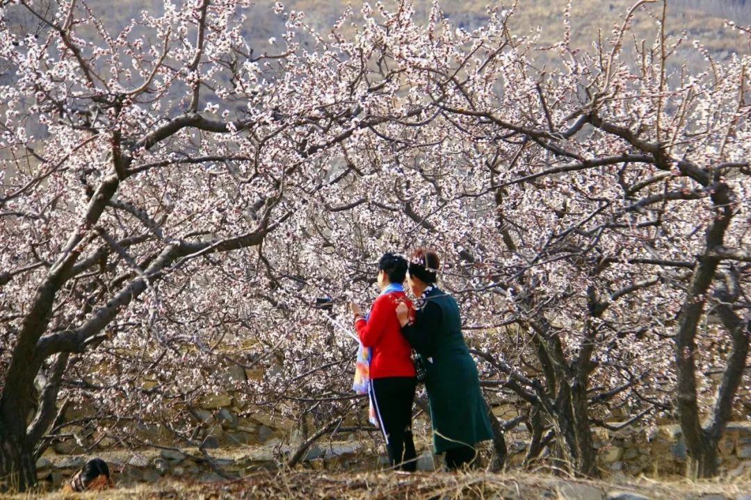 2018-03-20,山東鄒平。春天,杏花開放,游人在杏園里賞花自拍。作者:王敏南