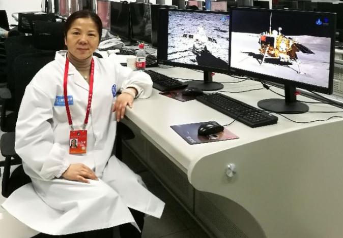 張玉花在嫦娥四號(hào)著陸器與月球車玉兔二號(hào)互拍后留影。航天科技集團(tuán)八院供圖