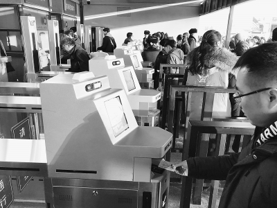 新上崗的刷臉通道到底使得咋樣?昨天下午,記者在北京站進站口看到,雖然所有驗票通道均已安裝上了“刷臉閘機”,但仍有約一半的通道暫時采取人工驗票的方式。