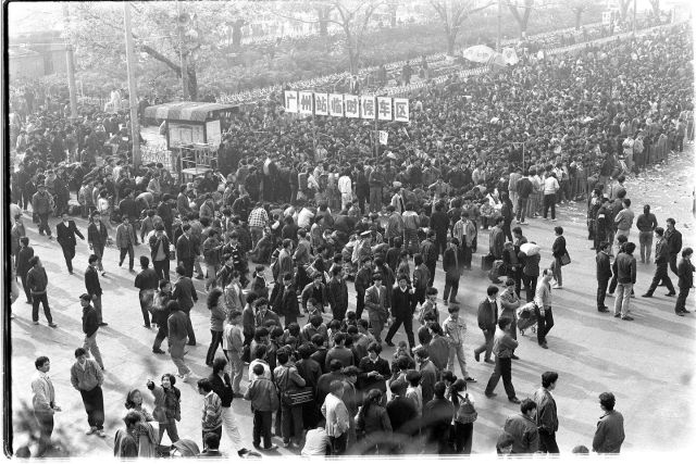 1992年,廣州火車站進入春運高峰期,各候車室全部爆滿,只好在火車站廣場上設立臨時候車區。(新華社記者 潘家珉 攝)