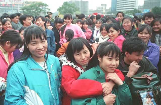 1995年,廣州火車站的打工妹。(新華社記者 陳學思 攝)