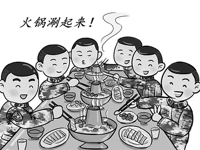 年夜飯,是中國人春節最溫暖的儀式。在軍營,如果除夕晚上能與戰友們圍坐一起,涮頓熱氣騰騰的火鍋,也有著特別的味道。那火辣辣的滋味,吃在嘴里,暖在心上,洋溢著滿滿的戰友情深。(姜 晨/繪 朱夢圓/文)