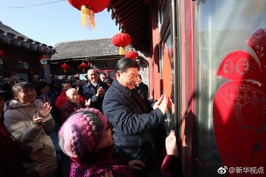 2月1日上午,習近平來到北京前門東區,沿草廠四條胡同步行察看街巷風貌,走進居民家中看望慰問,了解居民生活情況,與群眾一起包餃子、拉家常,并向大家致以新春祝福。(記者張曉松、謝環馳、鞠鵬) ????