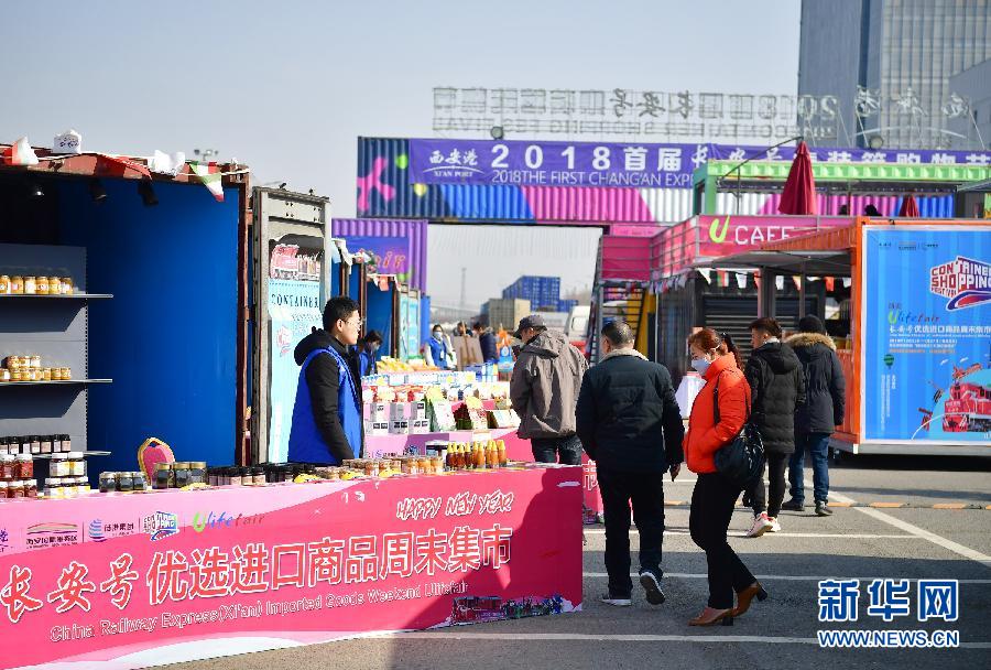 在陜西西安國(guó)際港務(wù)區(qū),消費(fèi)者在“長(zhǎng)安號(hào)”優(yōu)選進(jìn)口商品周末集市上參觀(1月19日攝)。新華社記者 邵瑞 攝
